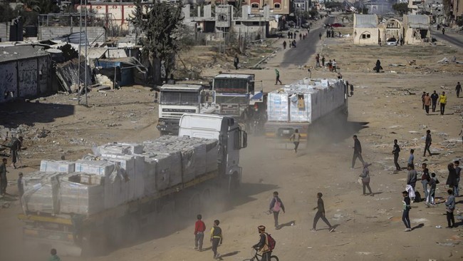 Gaza - Lebih dari 2.400 truk bantuan kemanusiaan telah memasuki Gaza pada hari ketiga gencatan senjata. Kedatangan truk bantuan langsung diserbu warga Gaza.