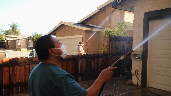 Antisipasi Ikut Terbakar, Warga California Semprot Rumahnya Pakai Air