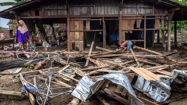 Grobogan - Banjir bandang akibat jebolnya tanggul Sungai Tuntang menerjang Desa Baturagung, Kecamatan Gubug, Kabupaten Grobogan, Jawa Tengah. Begini kondisi pascabanjir.