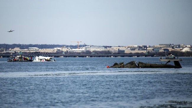 Amerika Serikat - Pesawat penumpang dan helikopter Black Hawk nyemplung ke sungai usai bertabrakan. Ini penampakan puing-puingnya.