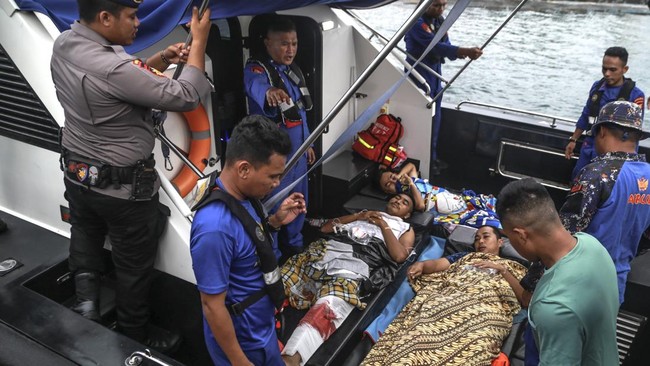 Evakuasi Korban Selamat Speedboat Basarnas yang Meledak