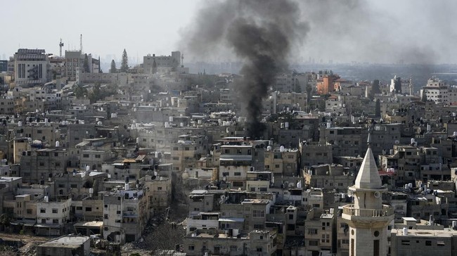 Asap mengepul di kamp pengungsi Tulkarem, Tepi Barat, saat militer Israel melanjutkan operasinya di wilayah tersebut, Selasa (18/2/2025).