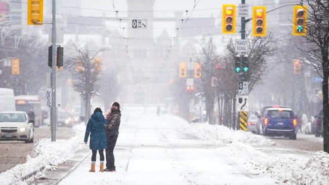 Toronto - Badai musim dingin yang parah melanda kota-kota besar di Kanada. Salju setebal 20 sentimeter (7,8 inci) turun di Toronto, sehingga sekolah-sekolah ditutup.