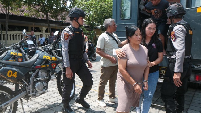 Personel kepolisian menggiring terduga pengedar narkoba yang diamankan dalam giat penggerebekan di Dasan Agung, Mataram, NTB, Kamis (20/2/2025).