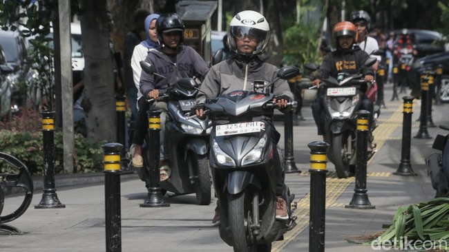 Pemotor Serobot Trotoar di Jalan Wahid Hasyim Jakpus