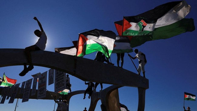 Cape Town - Rencana Presiden AS Donald Trump untuk merelokasi warga Palestina dari Gaza terus menuai kecaman. Kali ini warga Cape Town, Afrika Selatan, turun ke jalan.