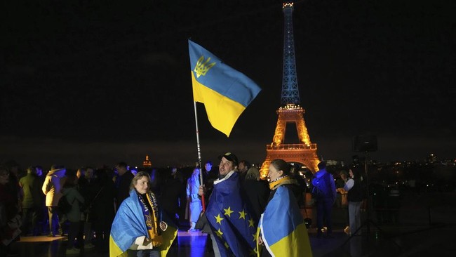 3 Tahun Perang Ukraina, Menara Eiffel Dihiasi Cahaya Biru-Kuning