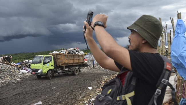 Pegiat lingkungan Indonesia Green Movement (IGM) mengukur kualitas udara yang tercemar limbah dari Tempat Pembuangan Akhir (TPA) Ciangir menggunakan alat anemometer digital di Tamansari, Kota Tasikmalaya, Jawa Barat, Kamis (27/2/2025).