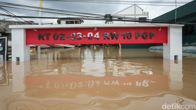 Bekasi - Kawasan Pondok Gede Permai (PGP) di Kecamatan Jatiasih, Kota Bekasi, Jawa Barat, kebanjiran. Warga menanti dievakuasi.