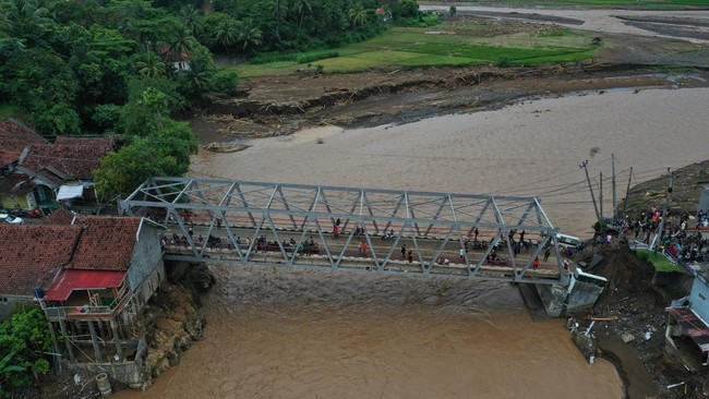 Penampakan Jembatan Amblas Akibat Banjir Bandang di Sukabumi