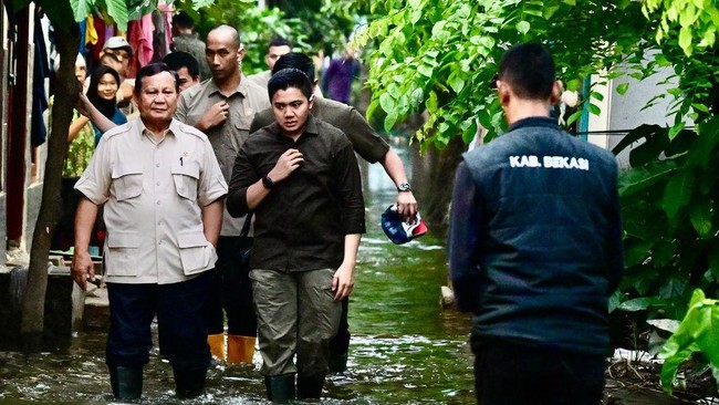 Dikutip dari keterangan pers tertulis Biro Pers Sekretariat Presiden, Prabowo mengunjungi warga korban banjir di Bekasi, Jawa Barat, Sabtu (8/3/2025) pukul 17.57 WIB. Prabowo masuk ke rumah-rumah warga yang masih tergenang.