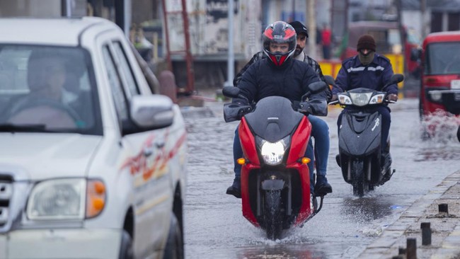 Irak - Hujan lebat juga menerjang kota di Iraq. Jalanan pun ikut banjir.