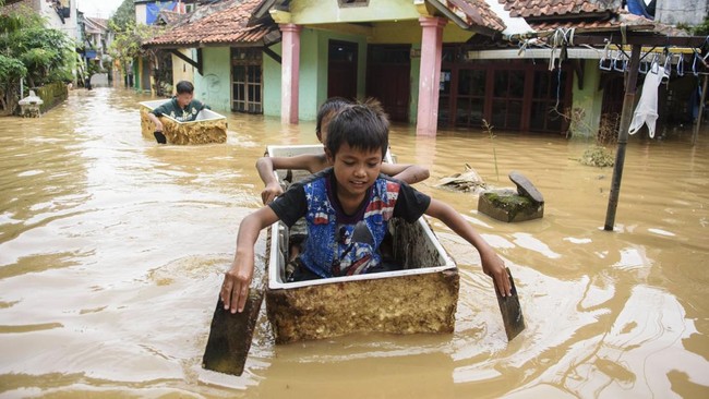 Banjir di Dayeuhkolot Bandung Jadi Arena Bermain Anak