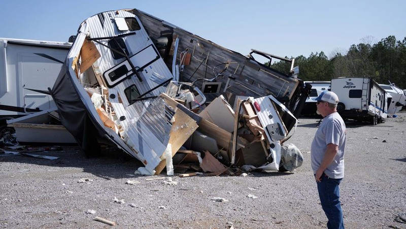 Salah satu wilayah yang terdampak ialah kawasan campervan di Calera, Alabama.