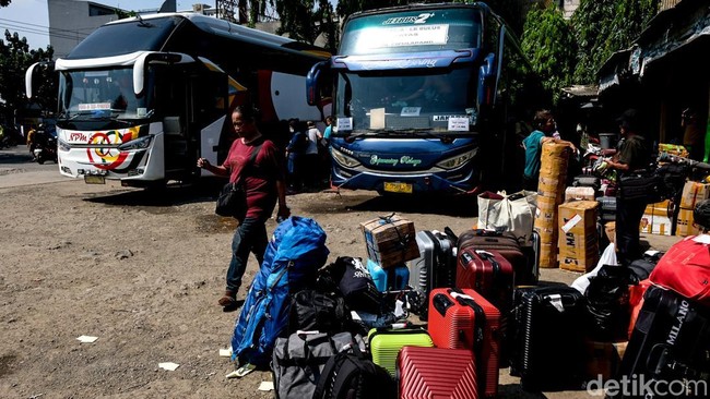 Jakarta - Warga mulai mudik lebih awal menjelang Idul Fitri 1446 H. Terminal bayangan Pondok Pinang, Jakarta Selatan, mulai didatangi pemudik.