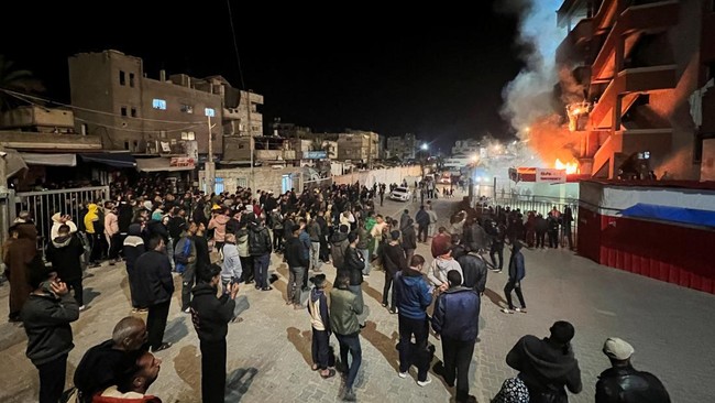 Gaza - Israel menyerang fasilitas publik yang dilarang diserang dalam perang. Ini detik-detik Israel menjatuhkan rudal ke RS Nasser, Khan Younis, Jalur Gaza.