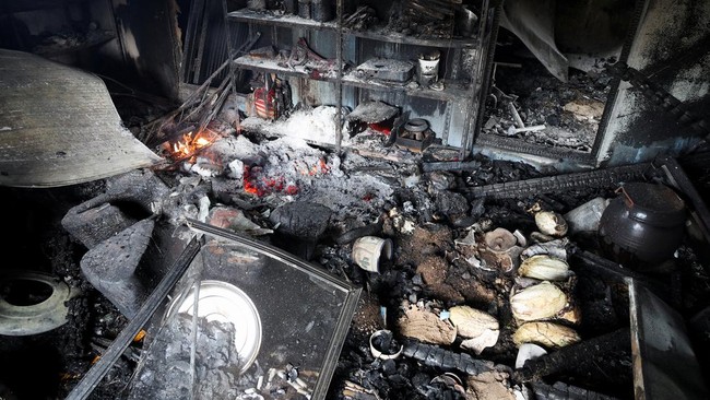 Barang-barang yang terbakar dan rusak tergeletak di properti setelah kebakaran hutan menghancurkan daerah tersebut, di Uiseong, Korea Selatan, Kamis (27/3/2025).