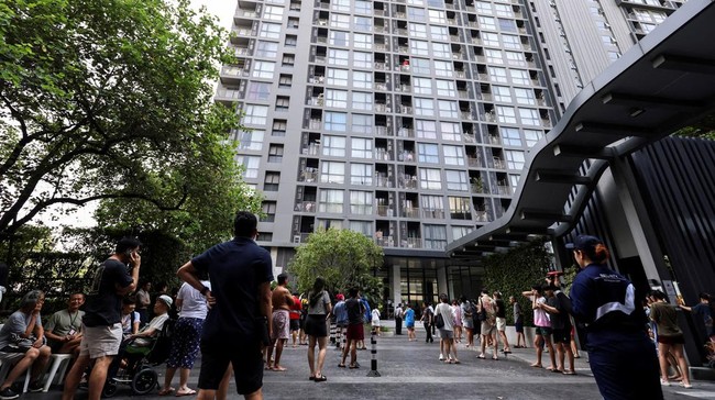 Bangkok - Gempa bumi berkekuatan magnitudo 7,7 mengguncang Myanmar bagian tengah, dan getarannya terasa hingga Thailand. Warga yang panik pun berhamburan ke luar ruangan.