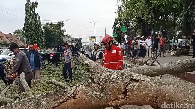 Pemalang - Pohon beringin di Alun-alun Pemalang, roboh hingga menimpa jemaah salat Idul Fitri, pagi tadi. Dua orang tewas dan 17 lainnya luka akibat musibah ini.