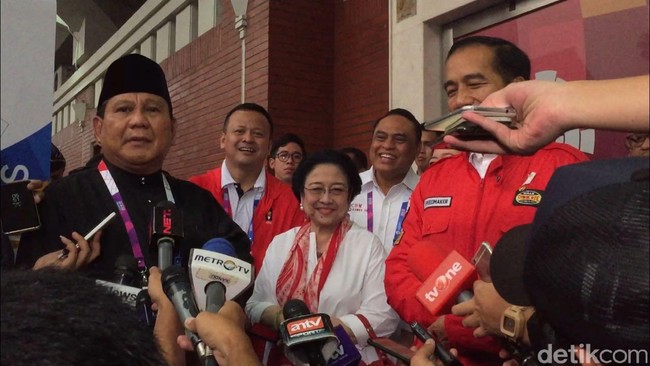 Pada 2018 lalu, Presiden RI ke-5 sekaligus Ketum PDIP Megawati Soekarnoputri memegang pundak Prabowo Subianto yang merupakan Ketum PB IPSI dan mereka tertawa bersama. Momen itu terjadi setelah Megawati dan Prabowo menonton cabang olahraga pencak silat Asean Games 2018 Bersama Presiden RI ke-7 Joko Widodo (Jokowi). (Abdul Rosyid/detikcom)