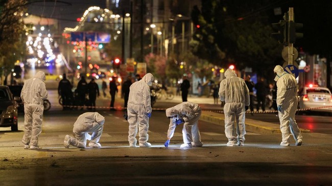 Yunani - Sebuah ledakan terjadi di luar kantor Hellenic Train di Athena, Yunani, Jumat (11/4). Tidak ada laporan langsung mengenai korban cedera.
