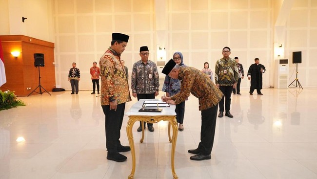 Jakarta - Wamensesneg Juri Ardiantoro melantik Teddy Robinson Siahaan sebagai Dirut BLU PPK Kemayoran. Pelantikan tersebut berdasarkan Keputusan Menteri Sekretaris Negara