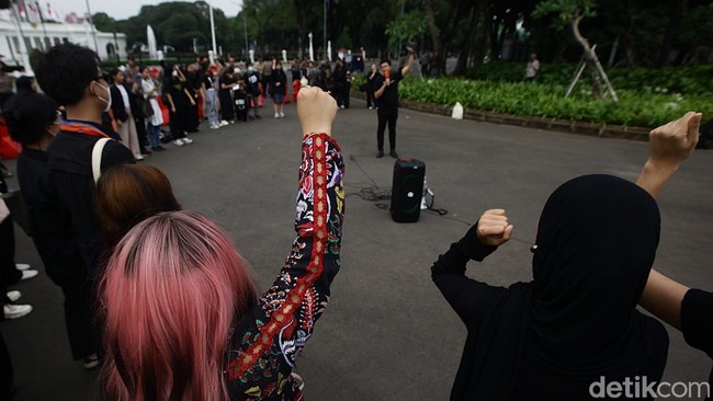 Jakarta - Aksi Kamisan ke-858 digelar di depan Istana Merdeka, Jakarta. Massa aksi meminta pemerintah membuka partisipasi publik dalam pembahasan R-KUHAP dan RUU Polri.