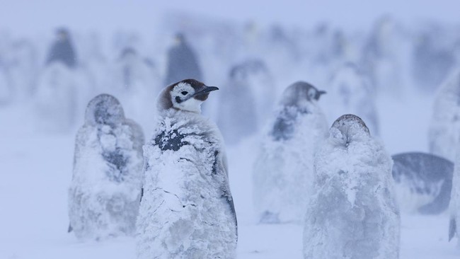Antartika - Antartika dikenal dengan musim dingin yang sangat dingin dan badai salju yang dahsyat. Begini momen penguin kaisar menghadapi badai salju di Antartika.
