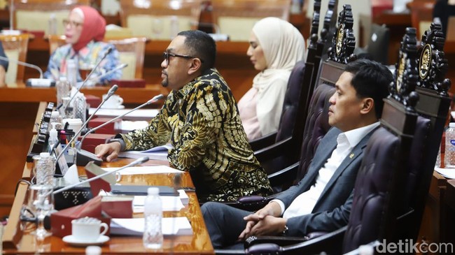 Rapat dengar pendapat (RDP) dipimpin oleh Wakil Ketua Komisi III Ahmad Sahroni di gedung DPR RI, Jakarta, Senin (21/4/2025).