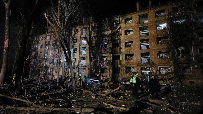 Kyiv - Perang Rusia vs Ukraina belum juga berhenti. Terbaru sebuah gedung apartemen di Kyiv, Ukraina, rusak dihantam rudal balistik Rusia.