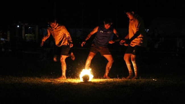 Aksi Seru Permainan Sepak Bola Api di Palangka Raya