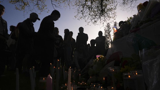 Warga Vancouver berkumpul di Kensington Park menyalakan lilin untuk mengenang korban tragedi kendaraan saat Festival Filipina, di Vancouver, Kanada, Minggu (27/4/2025).