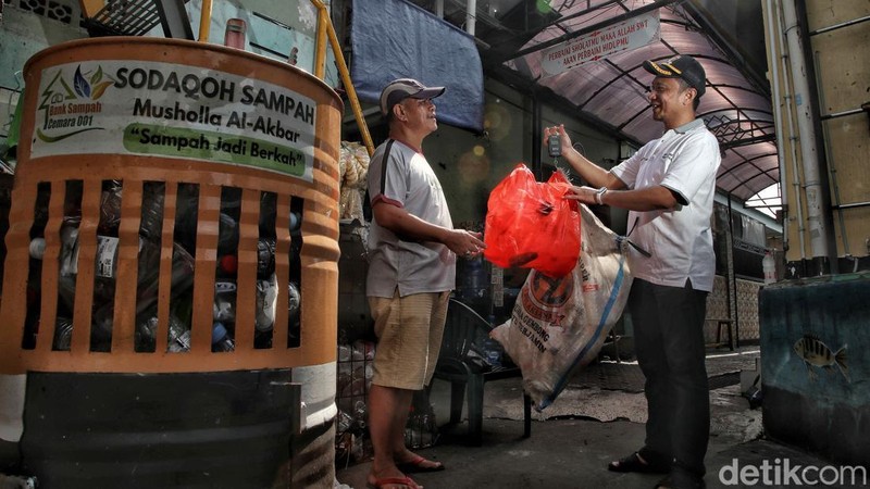 Seorang warga melakukan sedekah sampah di Musholla Al-Akbar, Koja Jakarta Utara.
