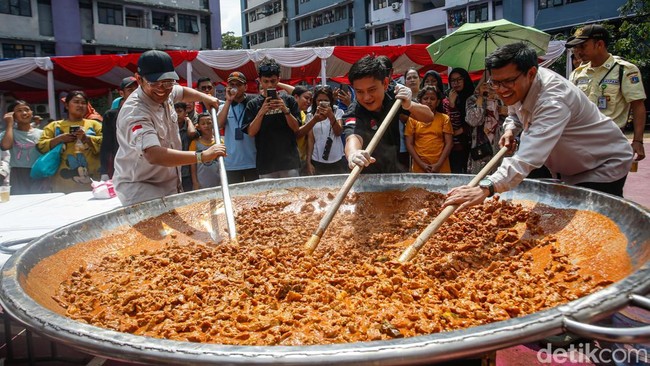 Jakarta - Warga Rusun Marunda antusias menyambut aksi masak besar Bobon Santoso. Ribuan porsi rendang dibagikan gratis jelang Idul Adha.