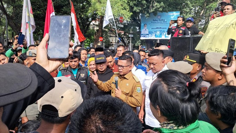 Selain menyampaikan aspirasi terkait tarif dan potongan oleh aplikator, para driver ojol juga menyuarakan kebutuhan akan jaminan sosial. Menanggapi hal ini, Andra menyebut Pemprov Banten memiliki kewenangan untuk memberikan BPJS Ketenagakerjaan bagi para driver ojol. (Arief/detikcom)