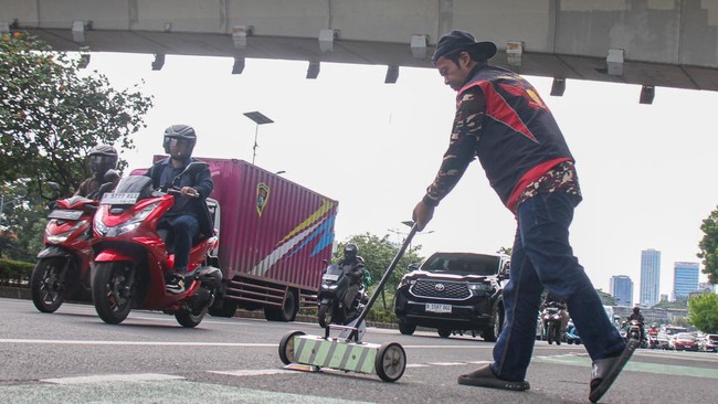 Aksi Relawan Bersihkan Ranjau Paku di Jalan