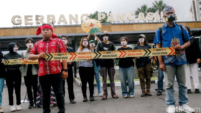 Jakarta - Walhi menggelar aksi protes terhadap kejahatan korporasi yang terjadi di Kalimantan Tengah. Mereka menyuarakan kekhawatiran serius tentang dampak ekologis.