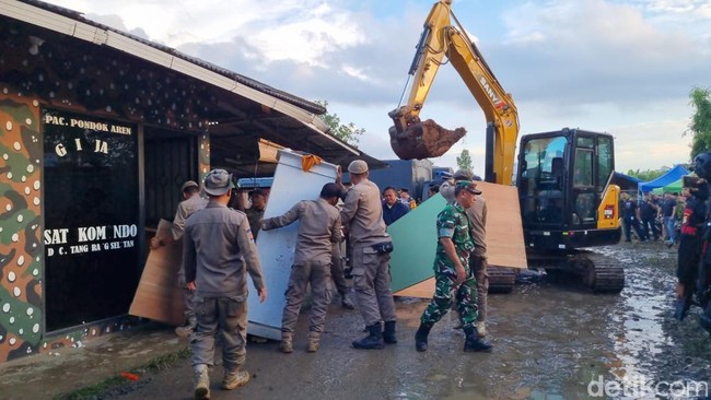 Tangerang Selatan - Lahan BMKG di Pondok Betung, Tangerang Selatan (Tangsel), dibersihkan. Anggota GRIB Jaya yang ada di lokasi ditangkap dan poskonya dirobohkan.