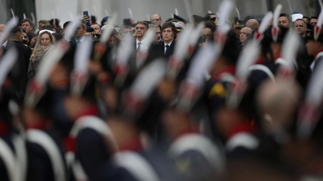 Presiden Argentina, Javier Milei, turut hadir dalam upacara yang berlangsung khidmat dan meriah. Dengan mengenakan pakaian resmi, Milei bergabung bersama para pejabat pemerintahan, tokoh masyarakat, dan ribuan warga yang memadati kawasan bersejarah di ibu kota.