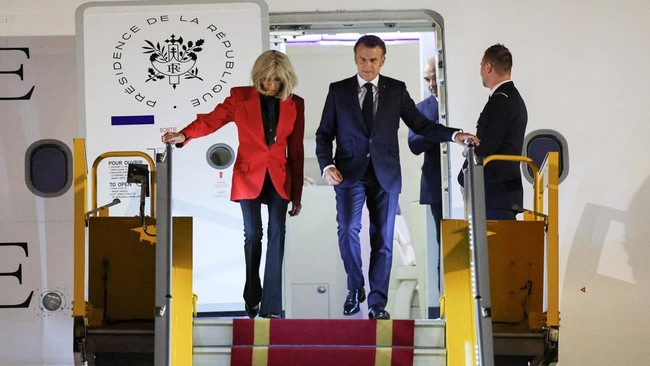 Jakarta - Emmanuel Macron mengunjungi Vietnam hingga Singapura selama sepekan. Saat tiba di Hanoi, ada momen Macron ditoyor istri hingga viral, lalu mesra di Indonesia.