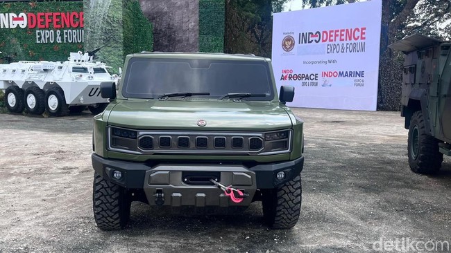 Jakarta - MV3 kendaraan taktis berbasis listrik buatan PT Pindad baru diresmikan Presiden Prabowo Subianto. Mobil itu 'mejeng' dengan gagah di Indonesia Defence 2025.