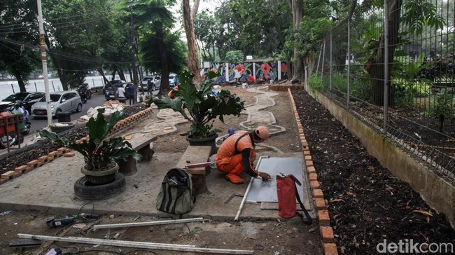 Potret Pasukan Oranye Tata Lahan Depan RSUD Pasar Minggu Jadi Taman