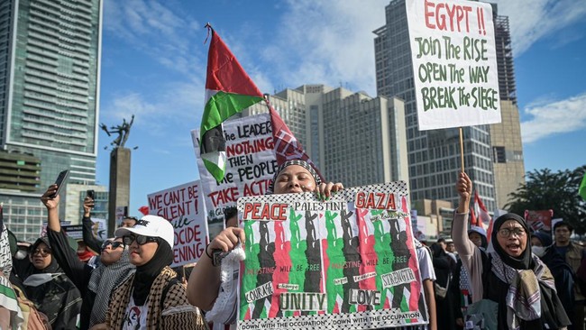 Jakarta - Seruan solidaritas menggema di jantung ibu kota. Ratusan warga Jakarta turun ke jalan mengikuti aksi Global March to Gaza.