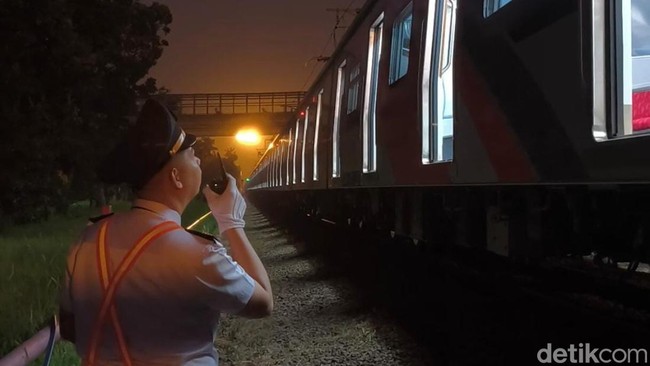 Jakarta - Pagi-pagi sekali, Mas Nul bersiap mengoperasikan KRL. Dia mengecek kondisi KRL, memastikan keamanan sebelum membawa rombongan kereta (roker) untuk bekerja.