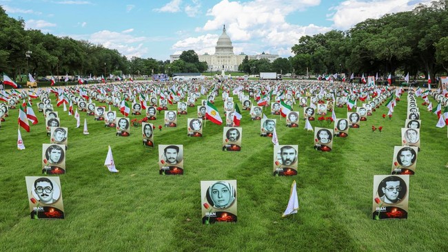Amerika Serikat - Aktivis Iran penuhi National Mall dengan bendera dan foto korban. Mereka menyerukan perubahan rezim dan dukungan untuk rakyat Iran yang tertindas.