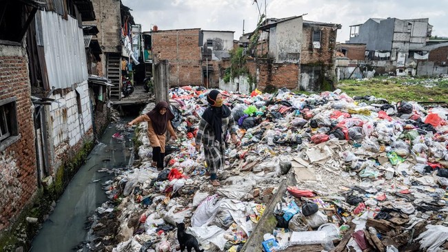 Jakarta - Minim kesadaran lingkungan, sampah rumah tangga menumpuk di Kampung Kiapang, Jakarta. Sampah memicu ancaman kesehatan.