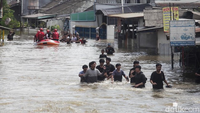 Jakarta - Perumahan Ciledug Indah 1 banjir hingga 1 meter. Warga dievakuasi memakai perahu karet.