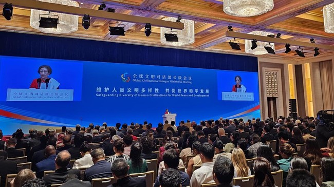 Presiden Kelima Republik Indonesia dan Ketua Umum PDI Perjuangan (PDIP), Prof. Dr. (H.C) Megawati Soekarnoputri, mengusulkan lahirnya sebuah deklarasi global bernama “Piagam Masa Depan Bersama” dalam forum Dialog Peradaban Global yang digelar di Wisma Tamu Negara Diaoyutai, Beijing, pada Kamis (10/7/2025). Foto: Dok. PDIP/Monang Sinaga