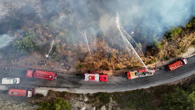 Suriah - Ribuan hektar hutan dan lahan pertanian di Latakia, Suriah, hangus terbakar. Begini penampakannya.