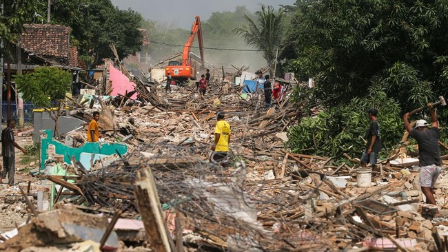 Banten - Bantaran Kali Cibanten mulai dibersihkan. Pemerintah membongkar bangunan milik 244 KK untuk normalisasi aliran sungai.